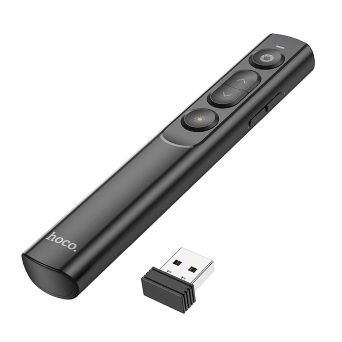 El puntero láser inteligente Bluetooth Hoco GM201 es un dispositivo inteligente y elegante para controlar sus presentaciones y actuaciones. Gracias al puntero láser incorporado, la tecnología inalámbrica Bluetooth de 2,4 GHz y otras funciones útiles, se convertirá en su asistente indispensable en cualquier evento.