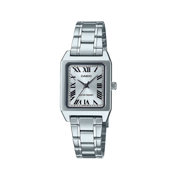 Una versión atrevida y de diseño cuadrangular del clásico reloj analógico metálico. El elegante color de la esfera y el índice de números romanos conforman un diseño distintivo y a la moda.